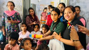 गिफ्टिंग स्माईल्स के तहत भारत विकास परिषद से मिलकर डीसीएम इंटरनैशनल स्कूल ने बच्चों को बांटा सामान
