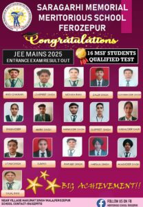 ਮੈਰੀਟੋਰੀਅਸ ਸਕੂਲ ਫਿਰੋਜ਼ਪੁਰ ਦੇ ਵਿਦਿਆਰਥੀਆਂ ਨੇ ਜੇਈਈ ਦੀ ਪ੍ਰੀਖਿਆ ਦਿਖਾਇਆ ਸ਼ਾਨਦਾਰ ਪ੍ਰਦਰਸ਼ਨ
